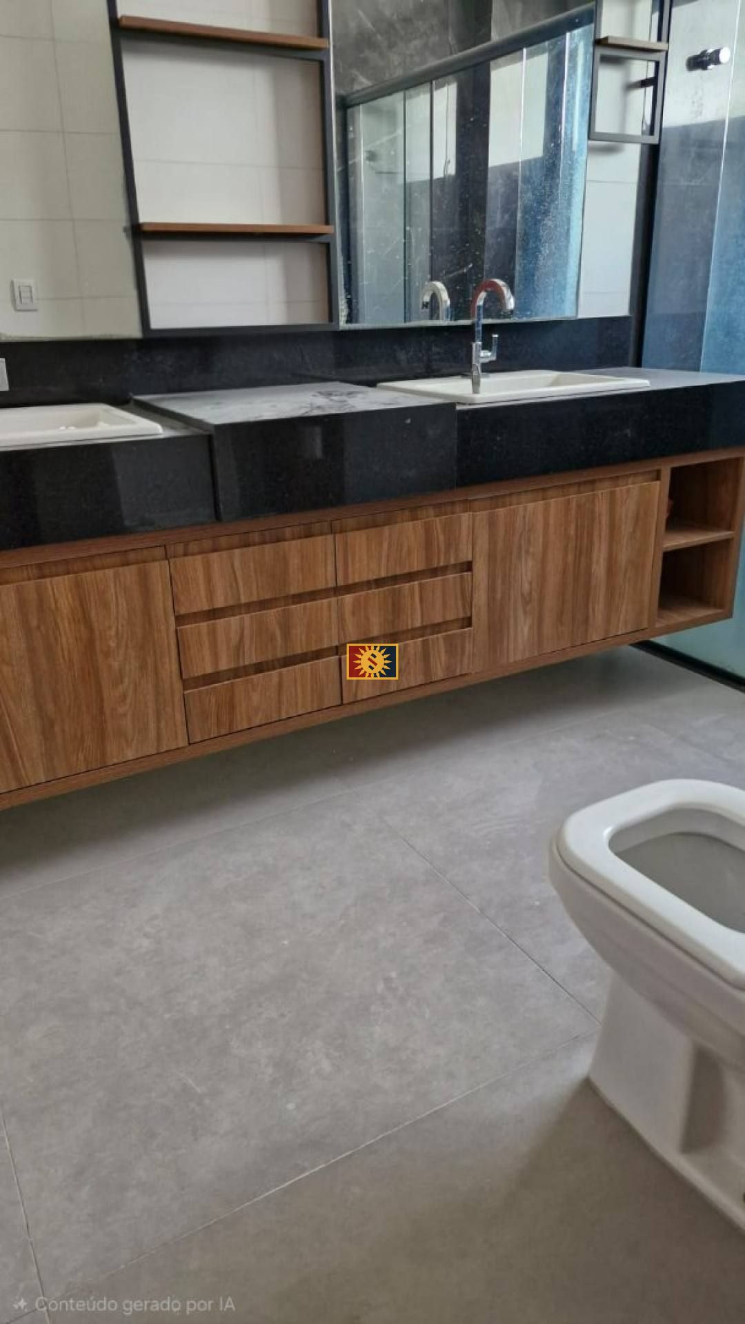 •Suíte master com: Closet, Banheiro com cuba dupla em nanoglass, 2 vasos sanitários