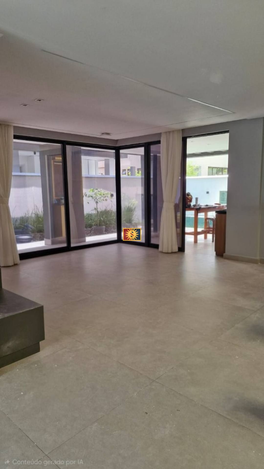 •Living estendido com sala de estar, jantar integrada com a área gourmet e a piscina
